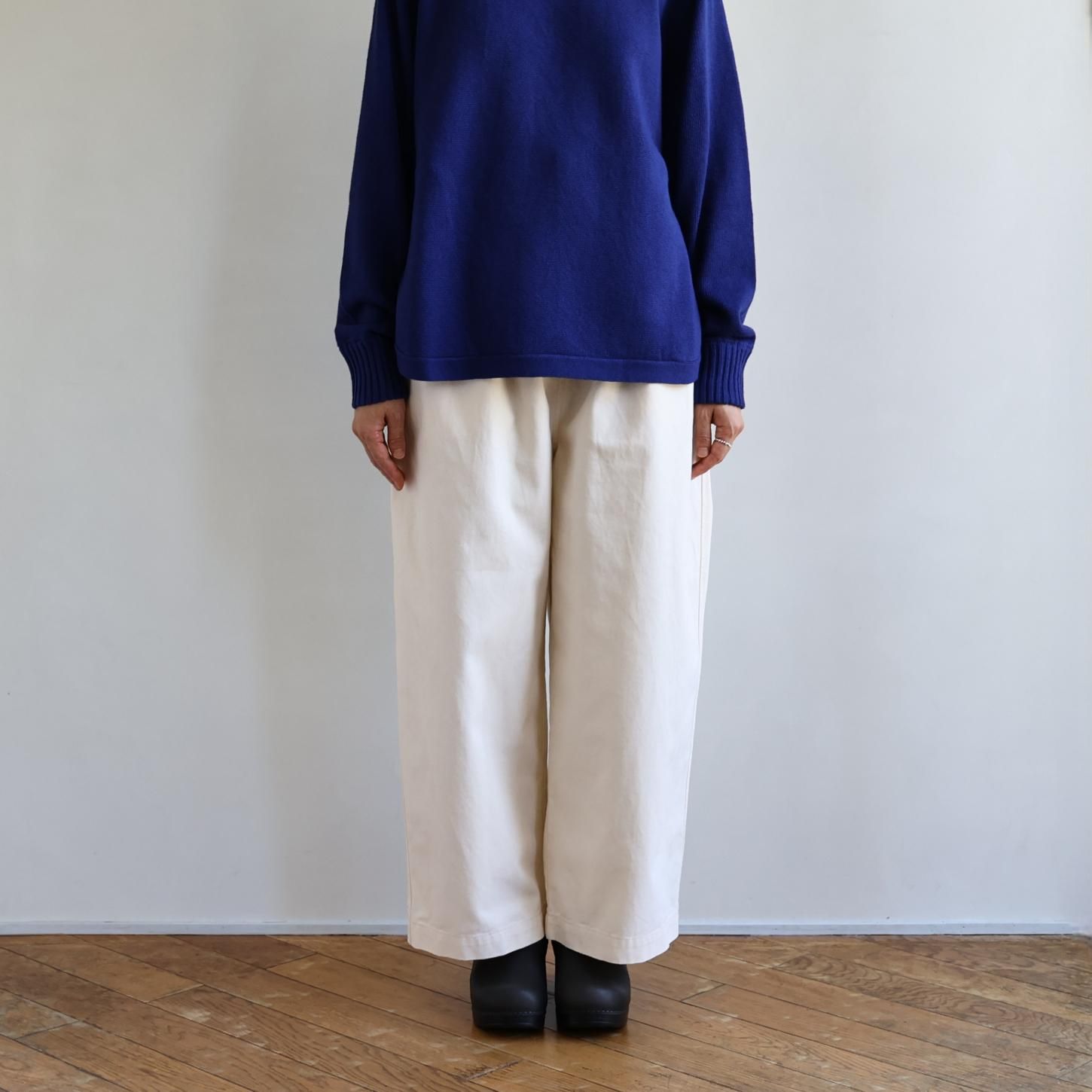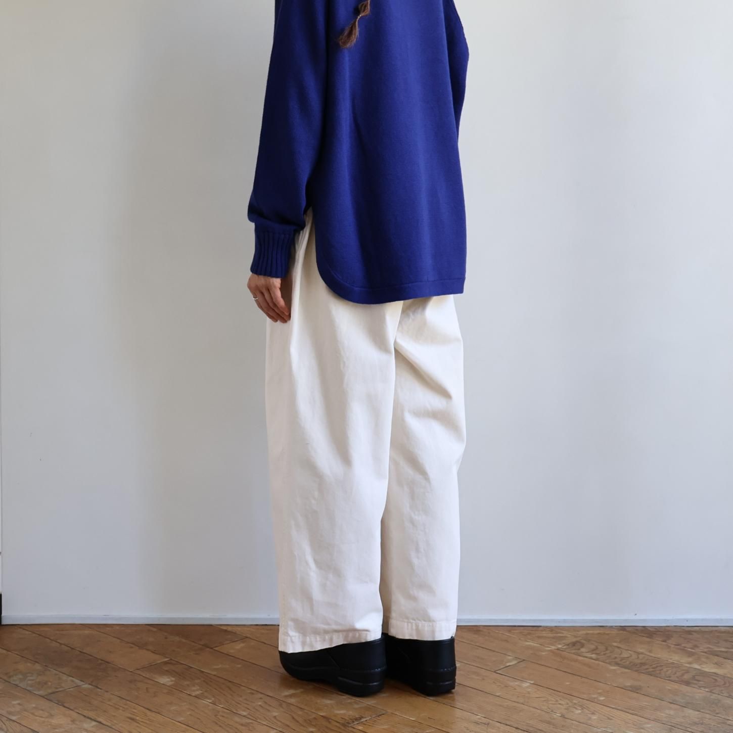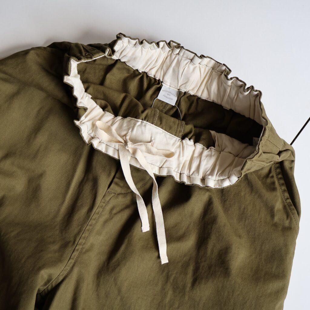 アイテムについて:ブラント定番人気のイージーチノ。ゆったりとしつつも広がりすぎないワイドシルエットは、幅広いトップスと合わせられ、リラックススタイルに重宝します。ウエストはフィット感抜群のドロストコードつきギャザーゴム仕様。ワークウェアにも用いられる丈夫なコットンチノ素材は、使い込むほどに柔らかくなり味のある風合いに。シーズン問わず活躍してくれるパンツです。