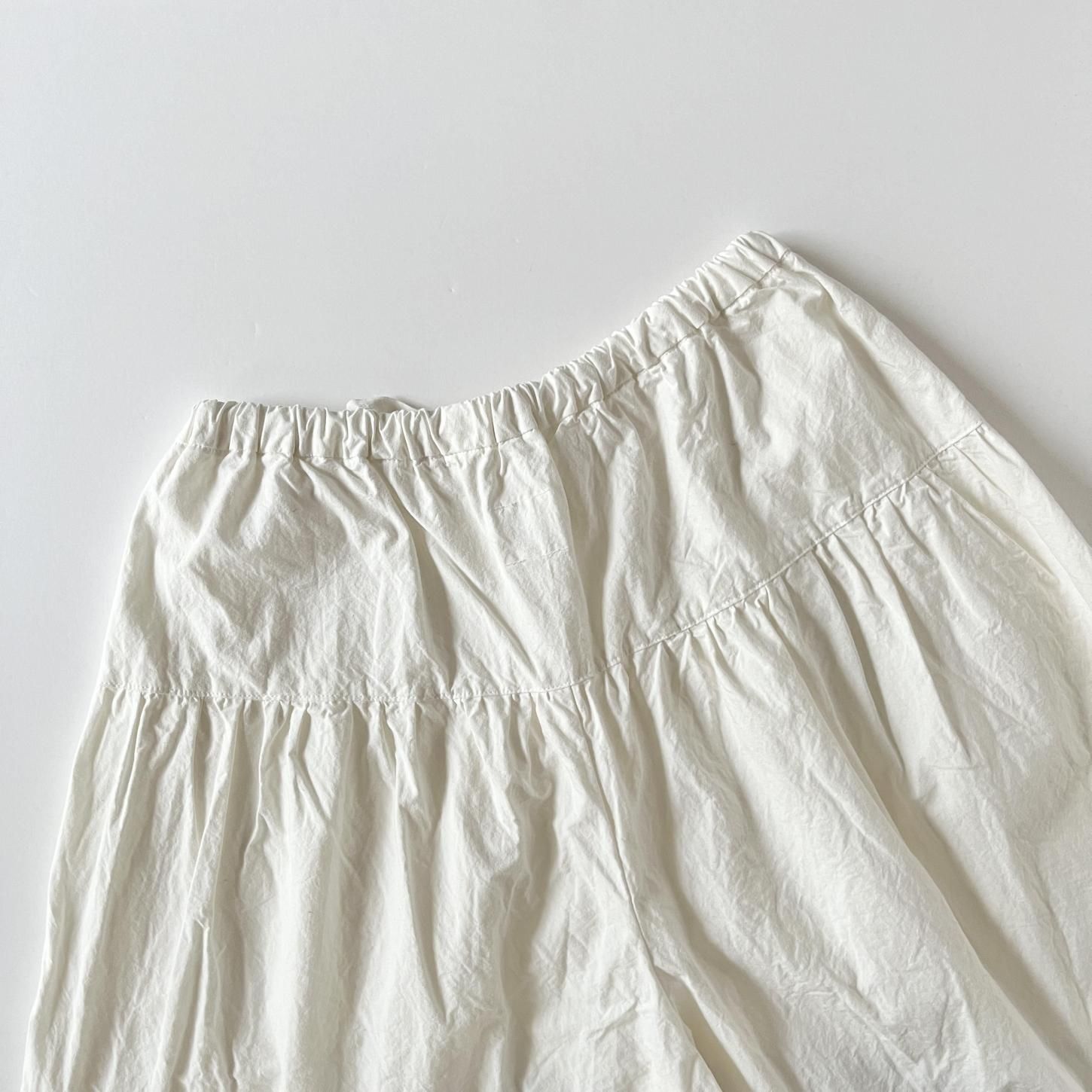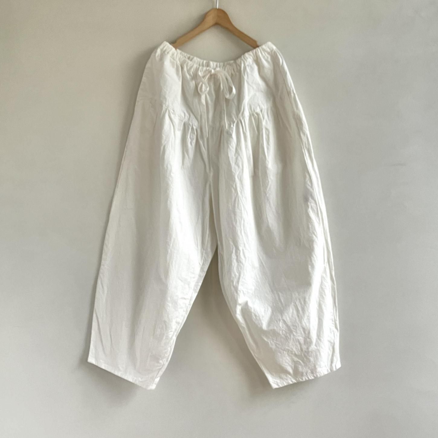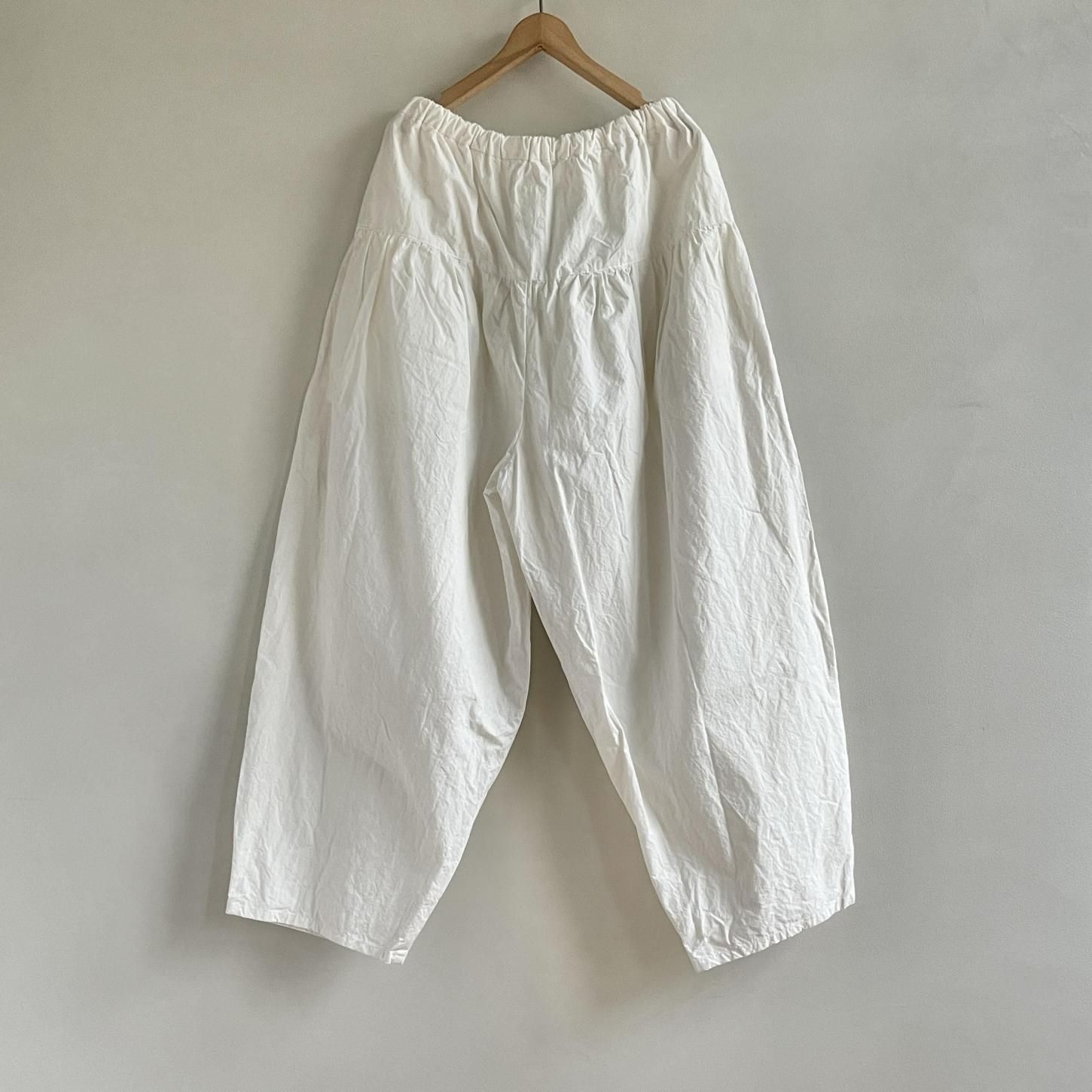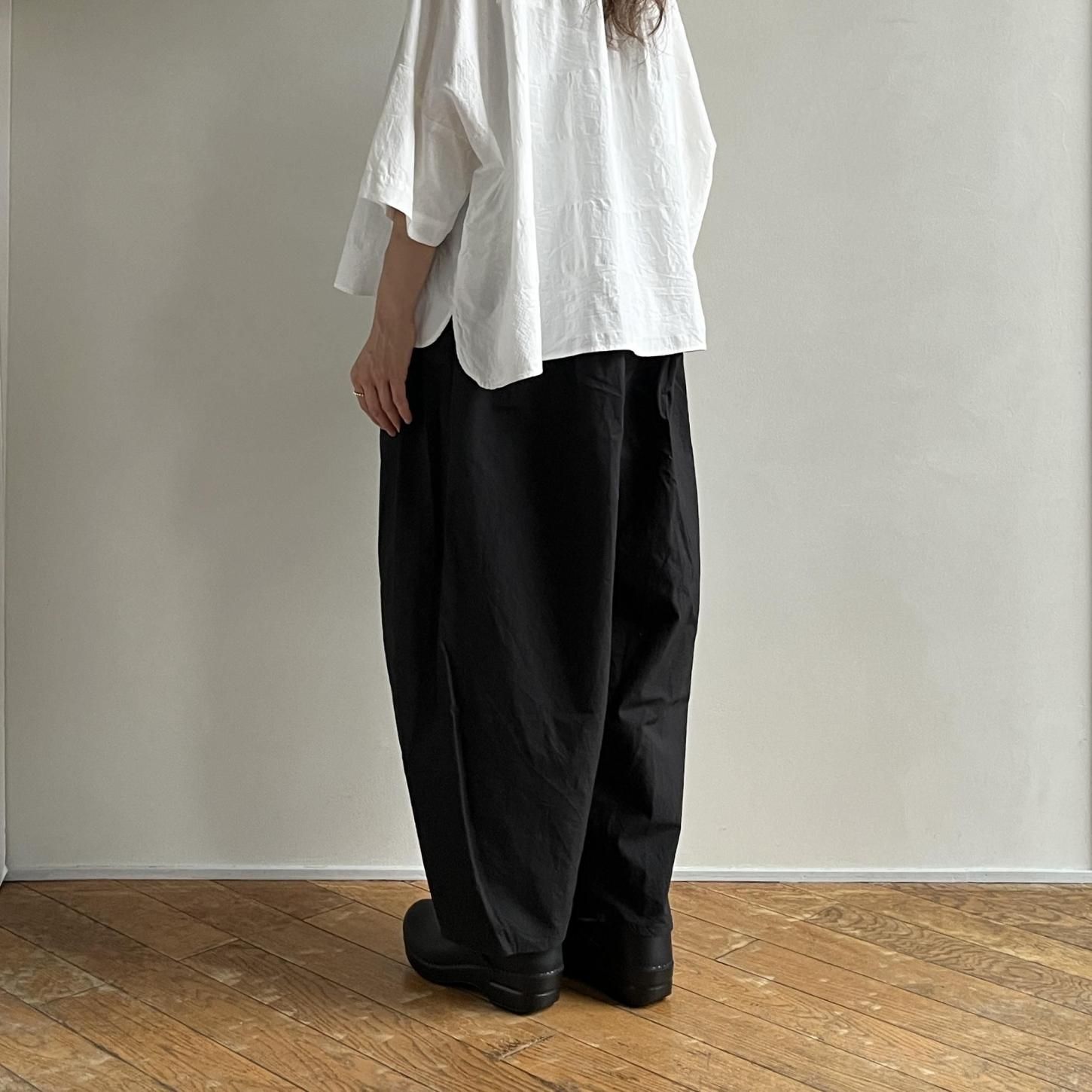 履きやすく、どんなスタイルにも合わせやすいからこそ、気づけばまた手に取りたくなる存在です。腰まわりにたっぷりと寄せたギャザーから生まれる立体感と、裾に向かってゆるやかにテーパードしたシルエット。リラックスした履き心地でありながら、装いをきゅっと引き締めてくれるデザインが魅力です。定番であることの安心感といつ手にしても感じられる新鮮さ。長く愛される理由をぜひ履き心地から感じてみてください。