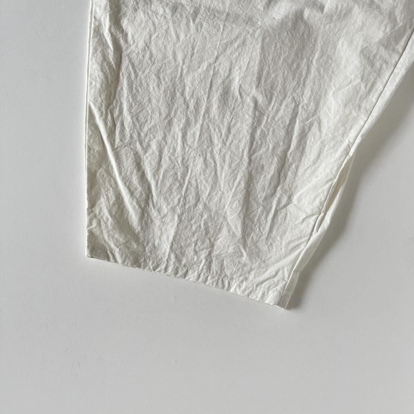 高密度に織られたコットンウェザー素材は、さらりとした肌ざわりで心地よく、毎日の暮らしに安心して取り入れられる丈夫さがあります。洗うほどにやわらかさと風合いが増し、ワードローブの中でいつも頼りになる一本。長く付き合っていただけるパンツです。