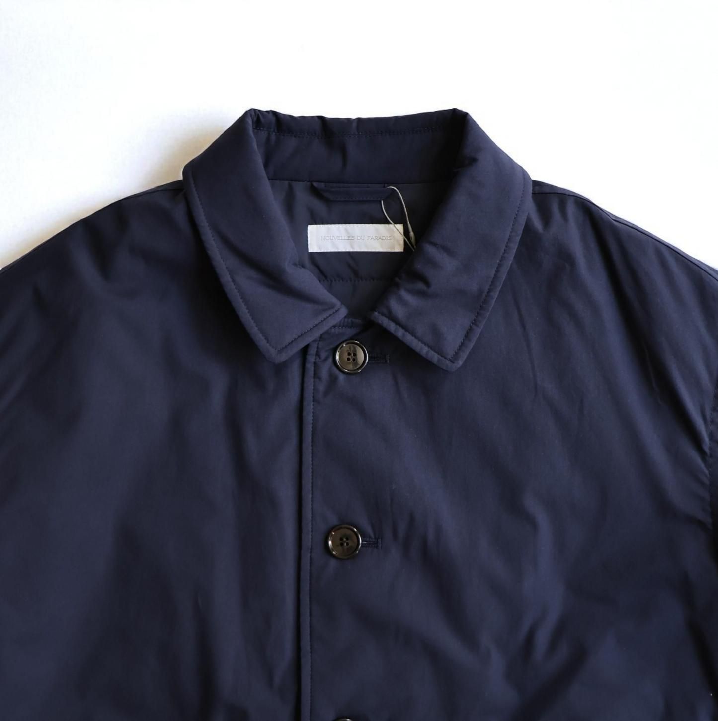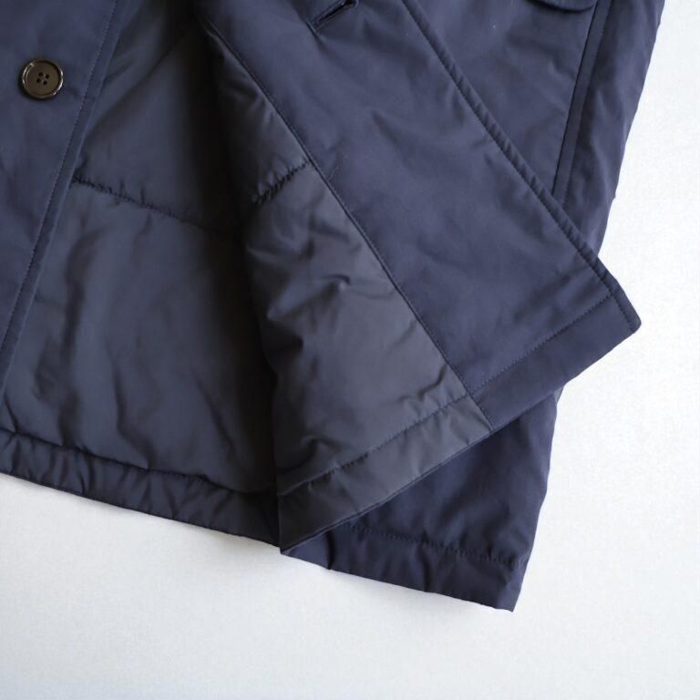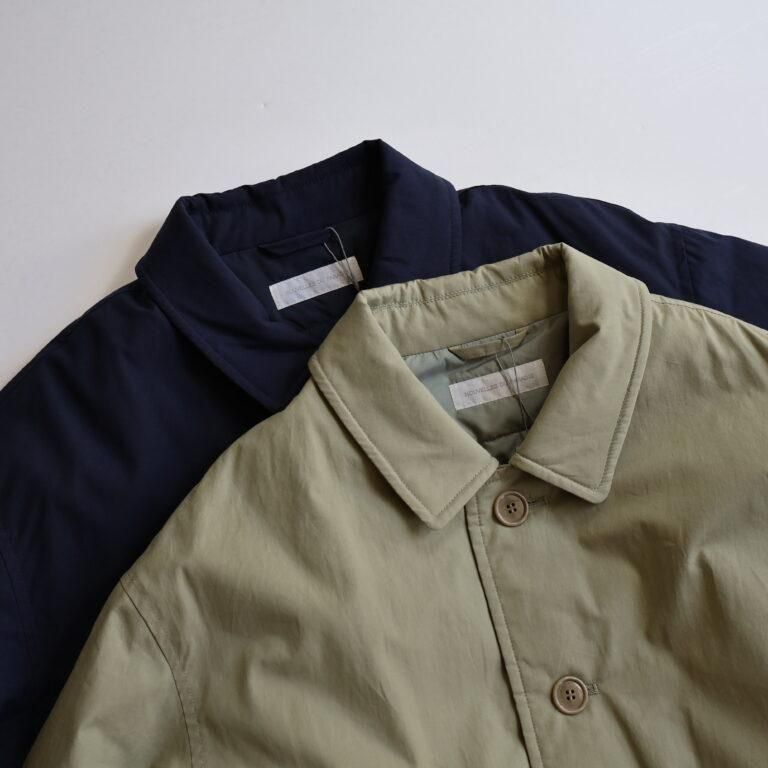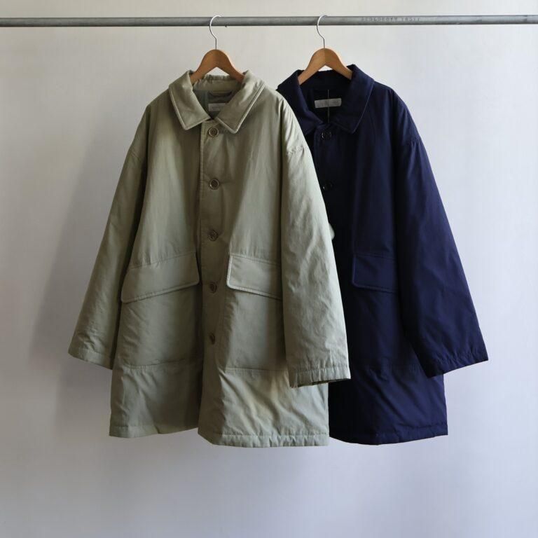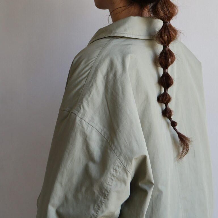 アイテムについて:軽くて暖かな薄手の中綿入りアウターです。表地にはコットン100%のタイプライター素材を使用。地厚になりがちな中綿は薄く入れているため、着ぶくれしにくいのが特徴です。身幅がとてもゆったりとしたつくりで、ローゲージニットなど厚めのアイテムとの合わせにも対応。軽量仕上がりでさっと着やすく、普段使いのアウターとして重宝します。少し肌寒い春先まで活躍してくれるアイテムです。
