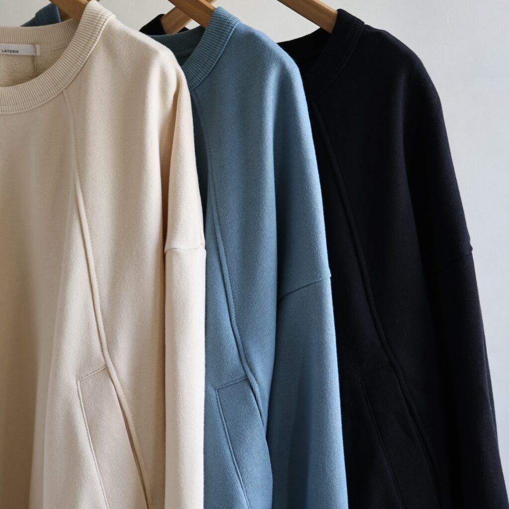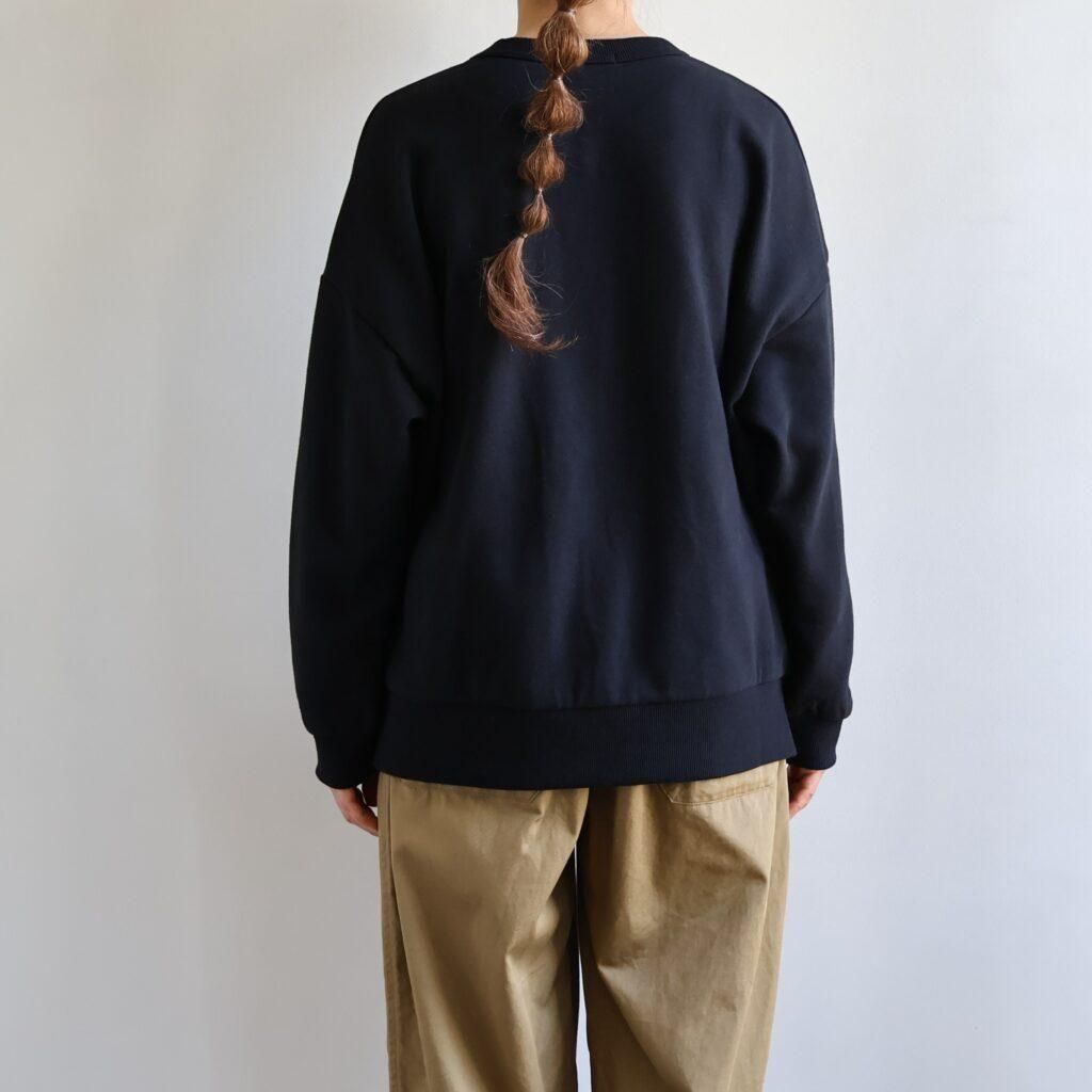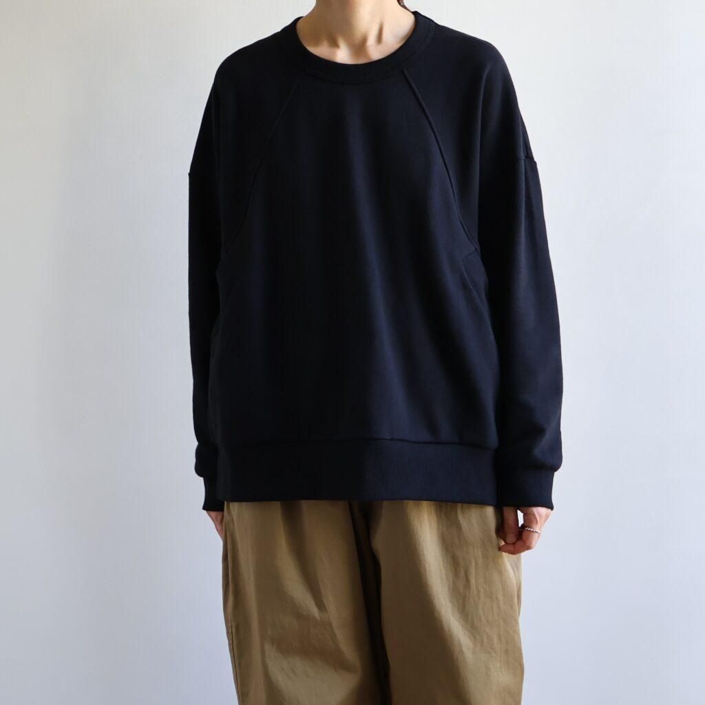 アイテムについて:身頃に切り替えを入れてボリュームを出したプルオーバーです。たっぷりとした身幅に肩まわりはドロップショルダーでゆったりとさせてオーバーサイズに仕上げています。ウエスト位置に縁取ったポケットがポイント。ソフトな肌ざわりで伸縮性が高く動きやすい裏毛素材で秋から春先まで長く活躍してくれます。
