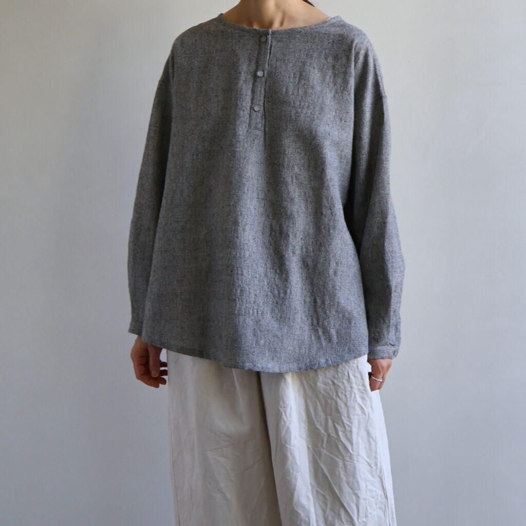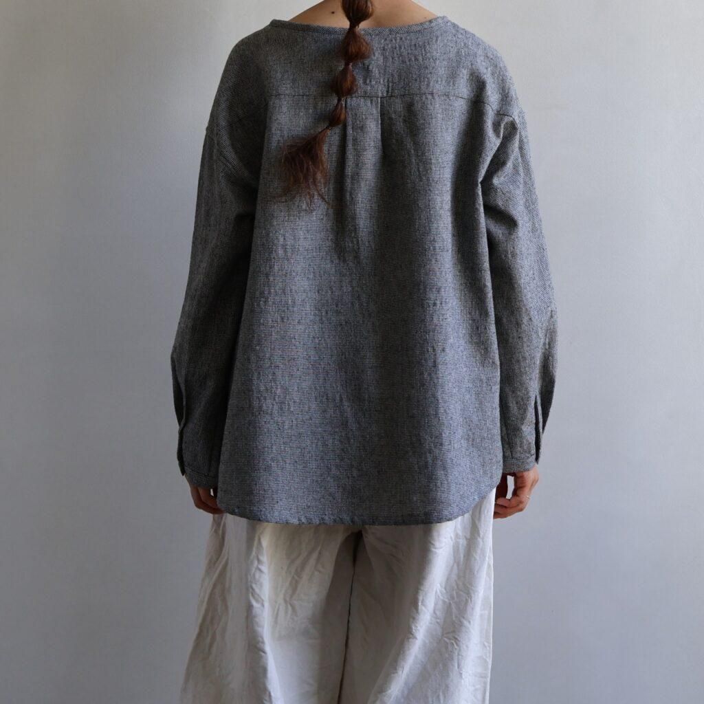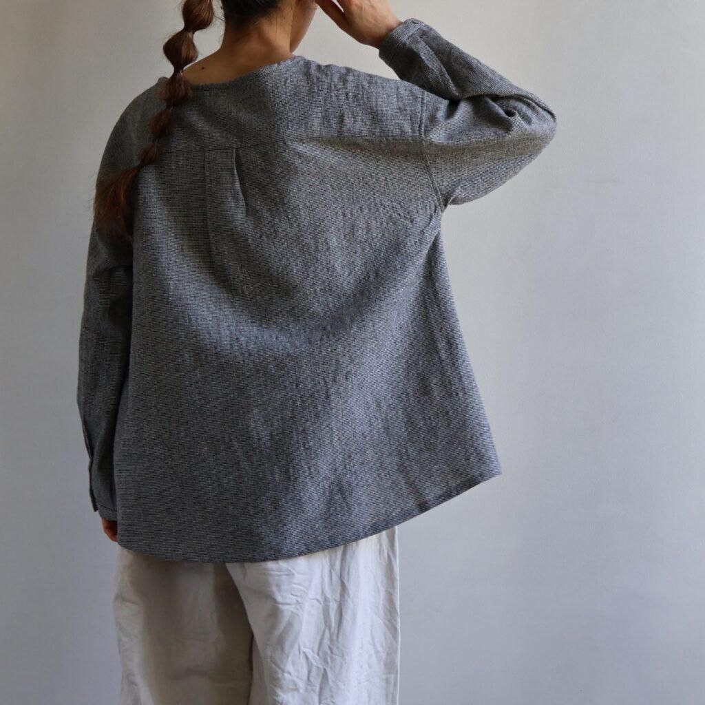 アイテムについて:余白を持ったサイズ感でゆったりと着られるオーバーシャツ。あたたかみのあるウール素材にふっくらとやわらかな質感をもたらすコットン素材を混紡し、印象的なチェック柄を凹凸のある表面感がなじませてくれます。ヘンリーネックのカジュアルなデザインに少しだけ肩を落としたリラックス感のあるシルエット。ゆるやかにラウンドした裾でボトム合わせも自然にきまります。