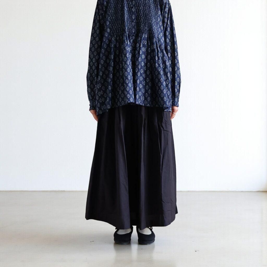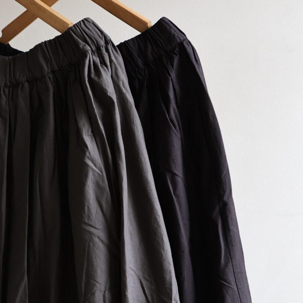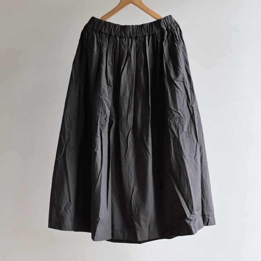 ウエストにギャザーを入れてきれいなシルエットを表現したスカート。厚みがおさえられた度詰めの織りにより、生地が透けにくくはき心地はとても軽やかです。総ゴム仕様のウエストはストレスの少ない快適な穿き心地。内ひもを備えフィットの調整が可能です。普段使いにはもちろん、ちょっとしたお出かけシーンにもおすすめの一枚です。