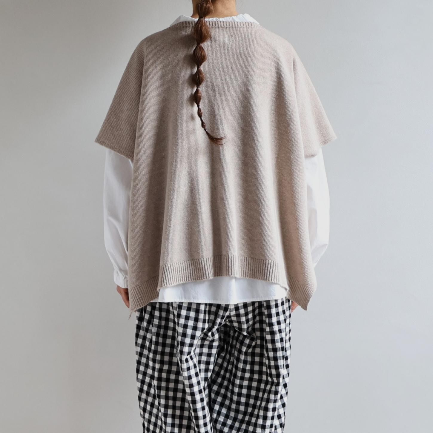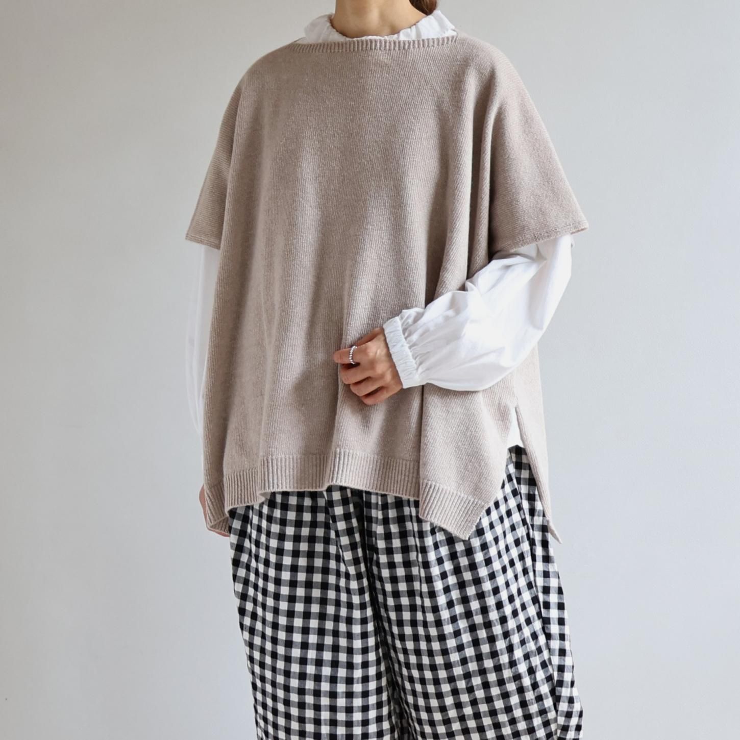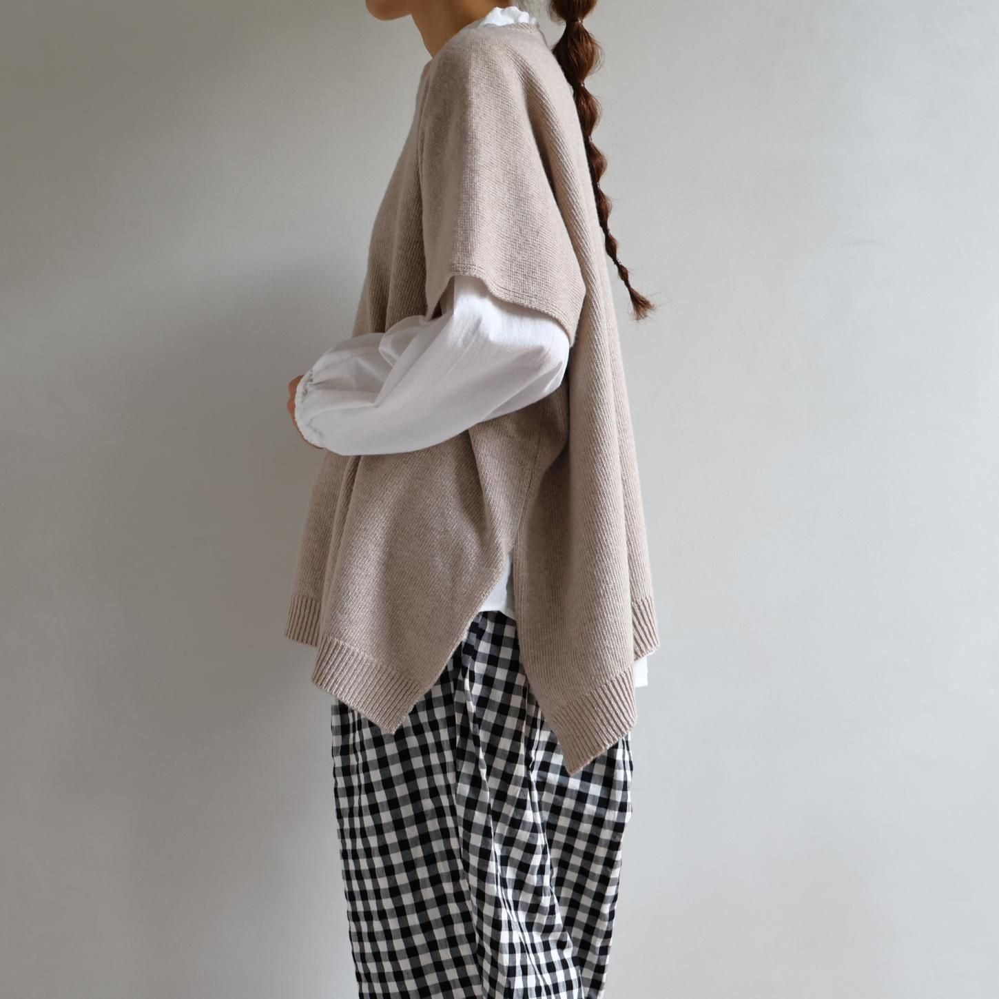 気温差のある季節にぴったりのニットベスト。すっきりとした襟元に、肩にかかるゆるやかなライン。丈は長すぎず短すぎず、ボトムとのバランスが取りやすいシルエットです。秋のはじまりには軽いアウターのように、冬にはコートの下のレイヤードにも。季節の移り変わりに寄り添いながら、長く着ていただける一枚です。