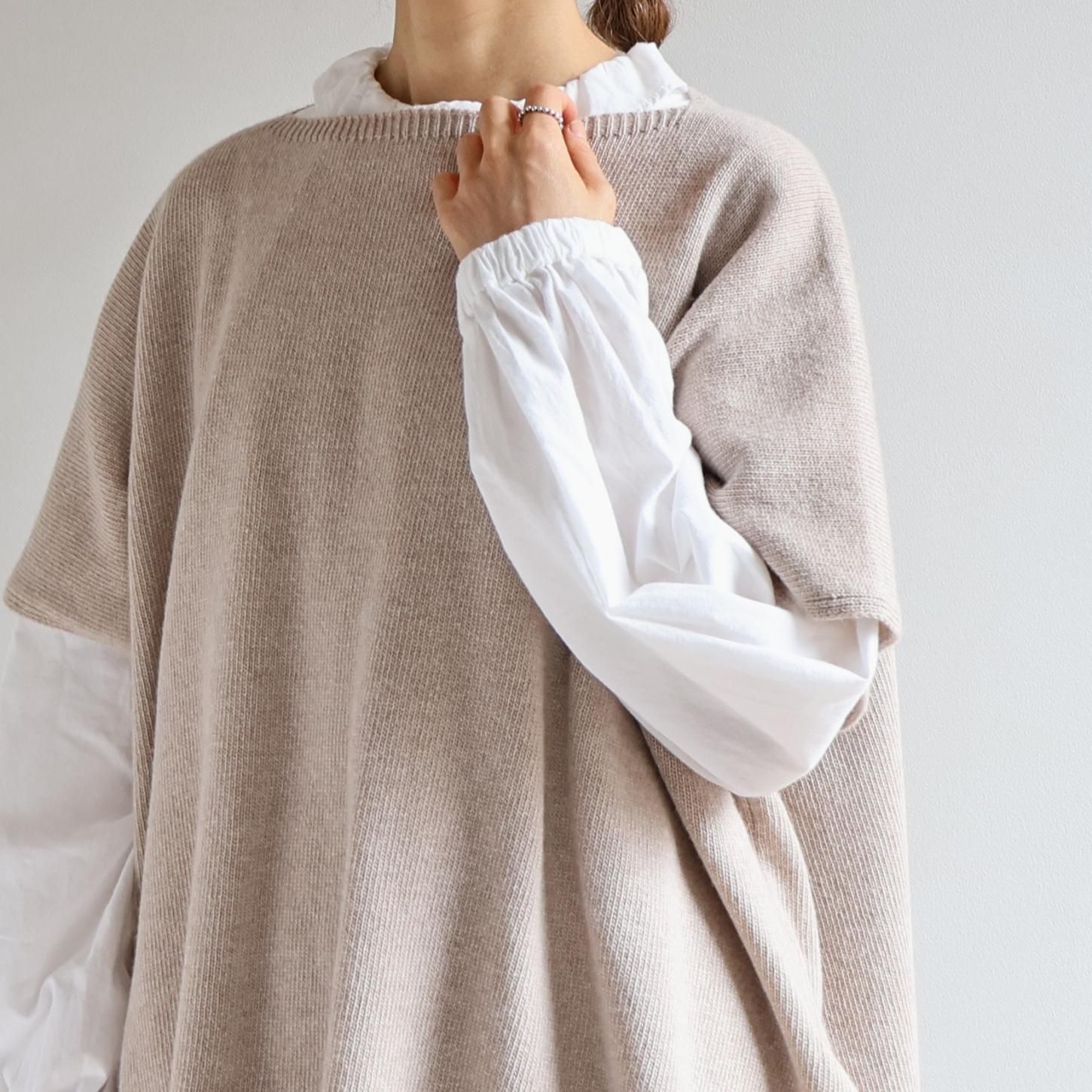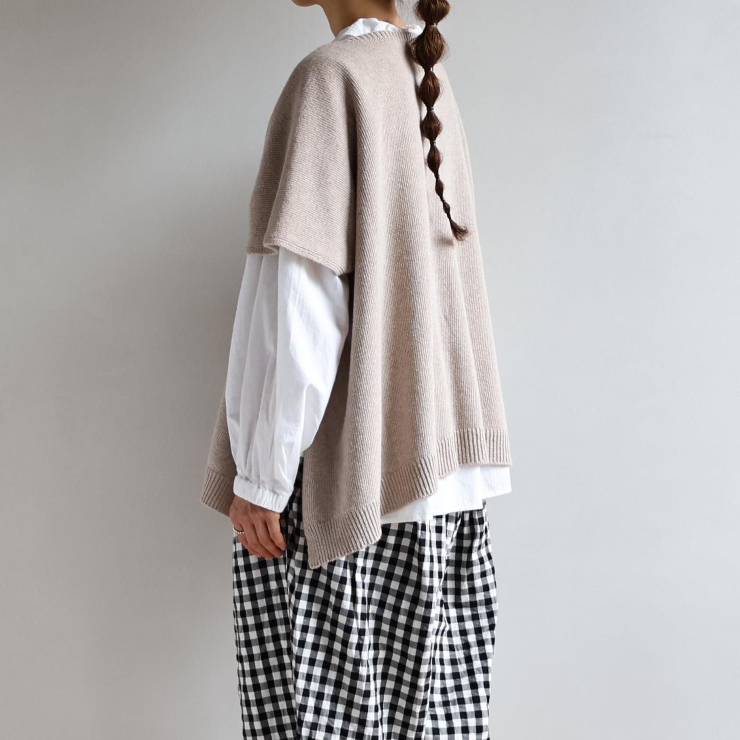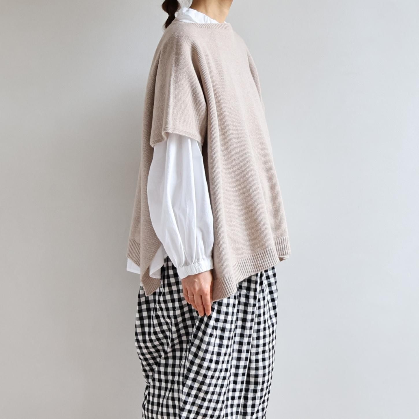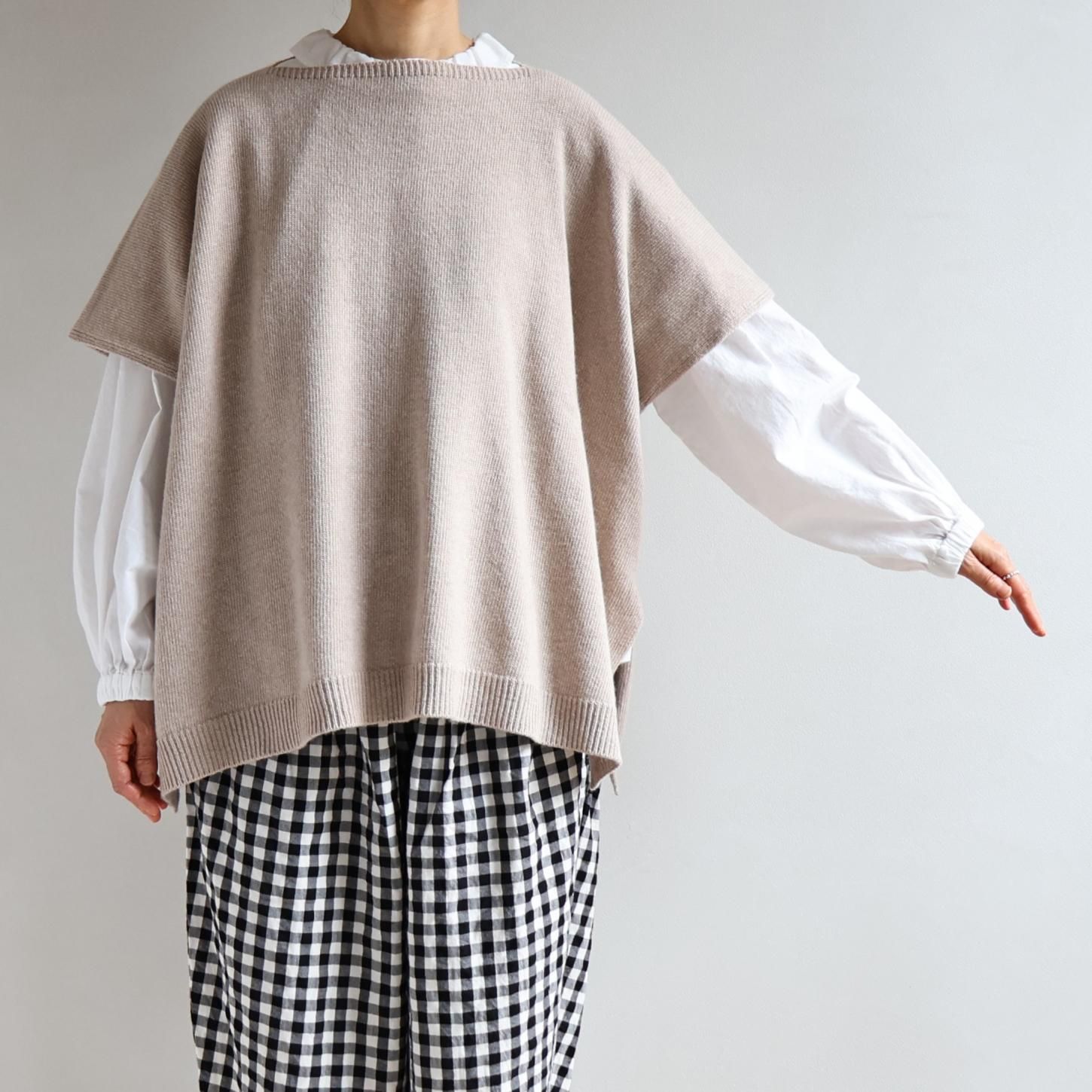 気温差のある季節にぴったりのニットベスト。すっきりとした襟元に、肩にかかるゆるやかなライン。丈は長すぎず短すぎず、ボトムとのバランスが取りやすいシルエットです。秋のはじまりには軽いアウターのように、冬にはコートの下のレイヤードにも。季節の移り変わりに寄り添いながら、長く着ていただける一枚です。