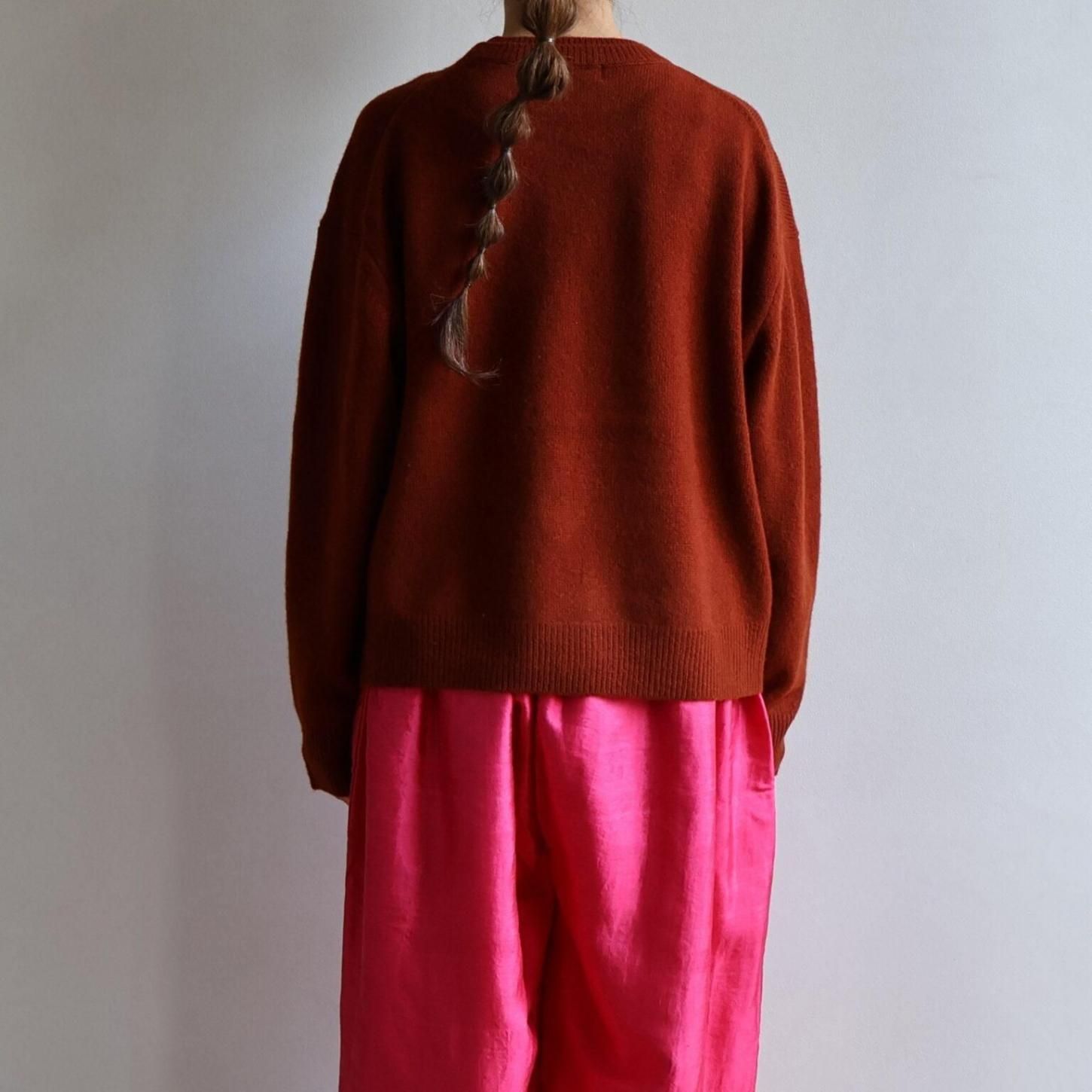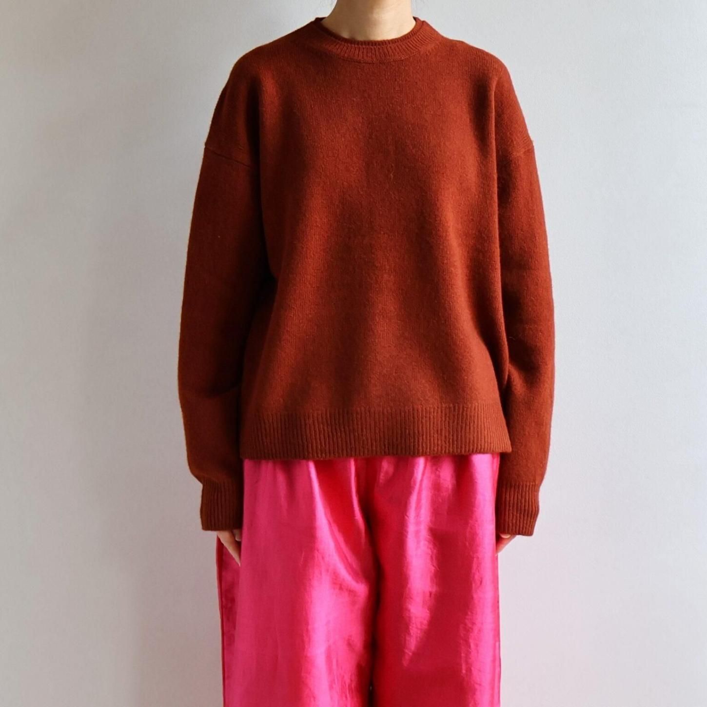 全体的にゆとりを感じさせるリラックス感が魅力的なニットプルオーバー。ベーシックな中にも重ねた衿や少し長めのリブでアクセントをプラス。すとんと落ちるゆったりとしたボックスシルエットと長すぎない着丈でボトムを問わず着回しできます。