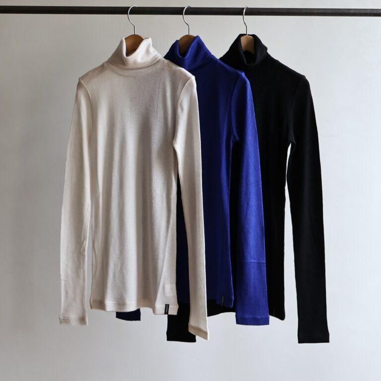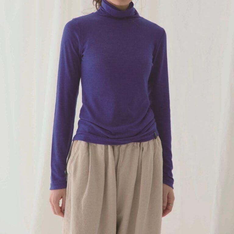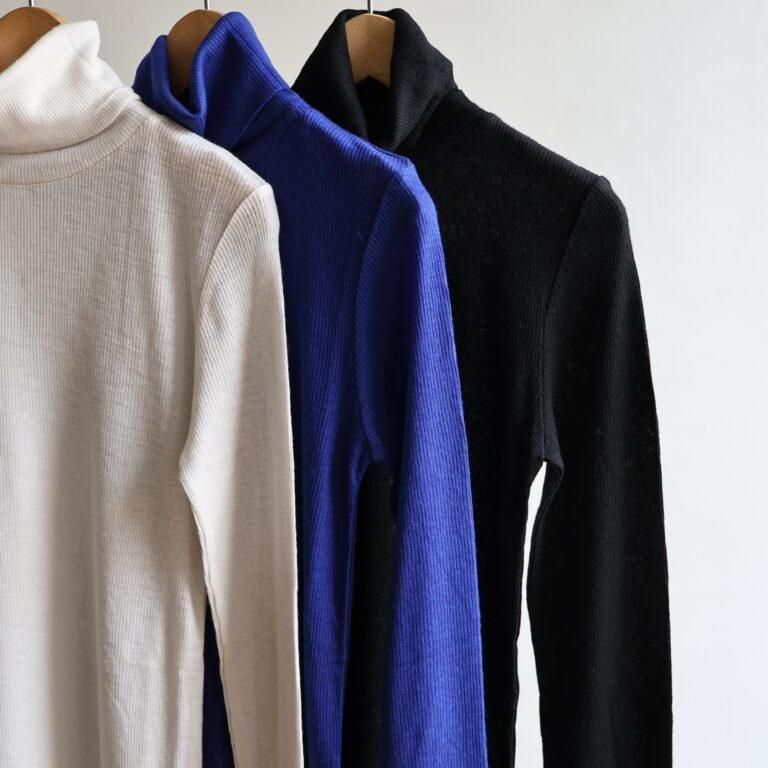 首もとを優しく包むタートルネックのプルオーバー。くしゅっとさせてニュアンスを出したり、二つ折りにしてすっきり見せたりと、アレンジが楽しめます。体に程よく沿うフィット感で、冬のインナーとしても頼れる一枚です。