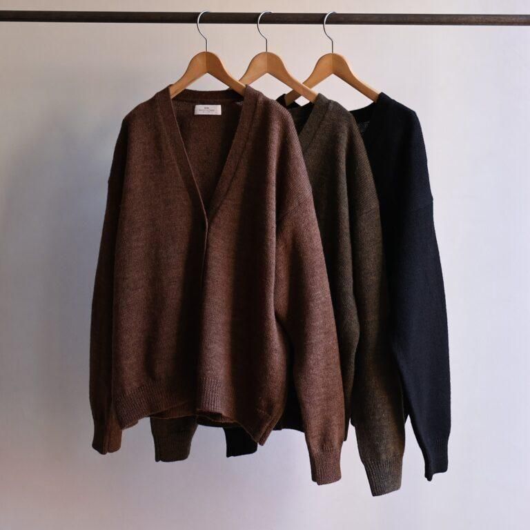 アイテムについて:フロント釦開き仕様のVネックカーディガン。COTSWOLDS(コッツウォルズ)と呼ばれるブリティッシュウール素材を使用したミドルゲージのニット。北極圏からの寒気と日々の雨風の激しい環境で飼育された英国羊毛は、崇高性とハリ・コシを併せ持ち、型崩れしにくく暖かいのが特徴です。ゴワつきがなく、毛羽立ちの少ないすっきりとした表面で着膨れしにくい素材感です。ほどよくゆとりを持たせたシルエットで、シャツやブラウスとのレイヤードもスムーズに。肌寒くなる季節の羽織りとして、軽やかに着こなせるアイテムです。